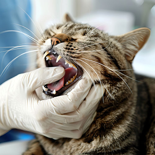 Dental disease is common in pets and may progress without obvious signs. Comprehensive dental care is provided under general anaesthesia, including scaling, polishing, tooth extractions, and treatment of periodontal conditions to support long-term oral health.